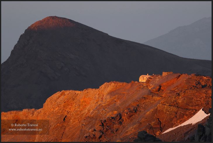 De entre los diversos temas tratados en este módulo está el de las instalaciones en altitud, realizadas para refugiarse de una manera u otra durante las excursiones. En el pdf descargable elaborado por el profesor Titos se realiza un repaso a la historia de este tipo de hospedamientos en la Sierra, así como el criterio cambiante a lo largo de los años para la construcción de los mismos. Es por ello que, a raíz de la imagen que os presentamos (de la que os pedimos indiquéis los respectivos nombres del refugio y del pico que aparecen), os invitamos a dar vuestra opinión concreta acerca de este tema en general y de este refugio en particular.