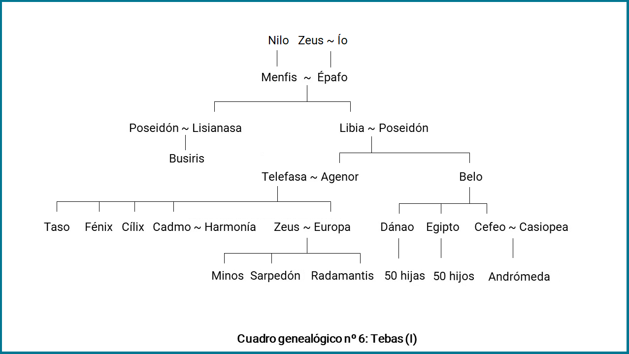 No obstante, no solo ha engendrado Poseidón monstruosidades, sino que también a él se remontan importantes sagas. Los eslabones orientales de los Labdácidas, es decir, sus ancestros más antiguos, Agenor y Belo, son hijos del dios y de Libia (cuadro genealógico nº 6), ninfa que dará nombre a la región africana. También lo son Pelias y Neleo, el primero protagonista del ciclo argonáutico (Unidad 5.1), el segundo aparece en el de Heracles y, además, es el ancestro de la casa real de Pilo. Pelias y Neleo nacen de Tiro, hija de Salmoneo, que los abandona al nacer y son amamantados por una yegua enviada por el dios. De Amimone, una de las hijas de Dánao tuvo a Nauplio, padre de Palamedes (Módulo 6): Amimone fue a una fuente a por agua y un Sátiro intentó forzarla, pero pidió ayuda a Poseidón y este la salvó, atacando al Sátiro con el tridente y obteniendo de ella sus favores (fig. 74-75-76). Sin embargo, su hijo más importante fue Teseo, nacido de su unión con Etra, pero criado por Egeo (Unidad 5.2, cuadros genealógicos nº 8 y nº 9) y, según algunas versiones, también es padre de Belerofontes (Unidad 5.1).