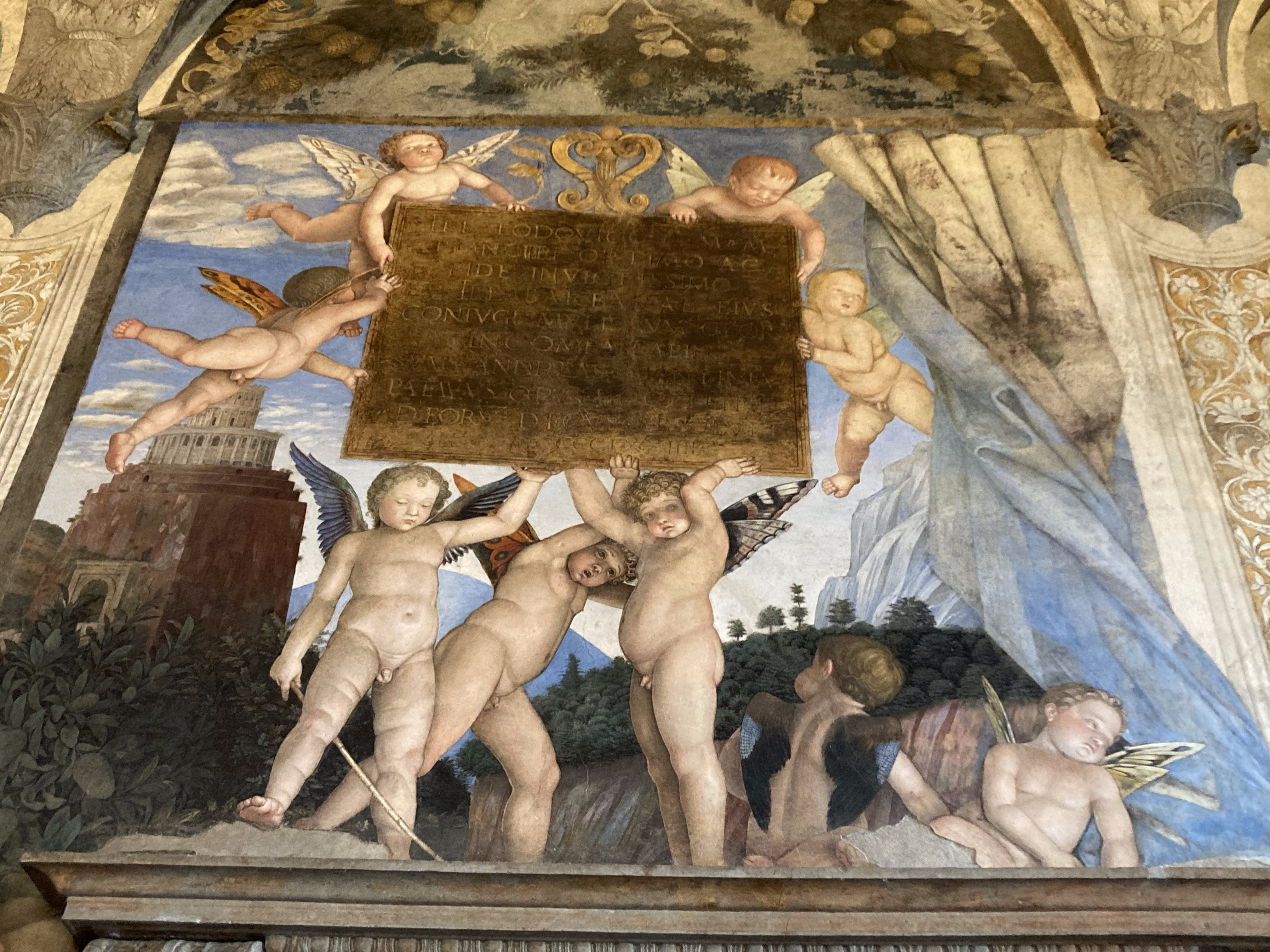 Por otra parte, en el arte religioso, tanto bizantino como occidental, es habitual la presencia de los querubines, pequeños niños alados que simbolizan la inocencia y, por extensión, las almas puras, de donde suelen acompañar a la Virgen María (fig. 6). No obstante, los denominados “putti”, “amorcillos”, “erotes” o “cupidos”, también son comparsas habituales en escenarios mitológicos, eróticos y dionisíacos. En determinados casos, por ejemplo, en la “Camara degli Sposi” de Mantegna, los infantes alados se han interpretado como los “genii” o “espíritus” tutelares de la familia del comitente, aquí los Gonzaga, siguiendo la tradición romana (fig. 7; Unidad 4.2).