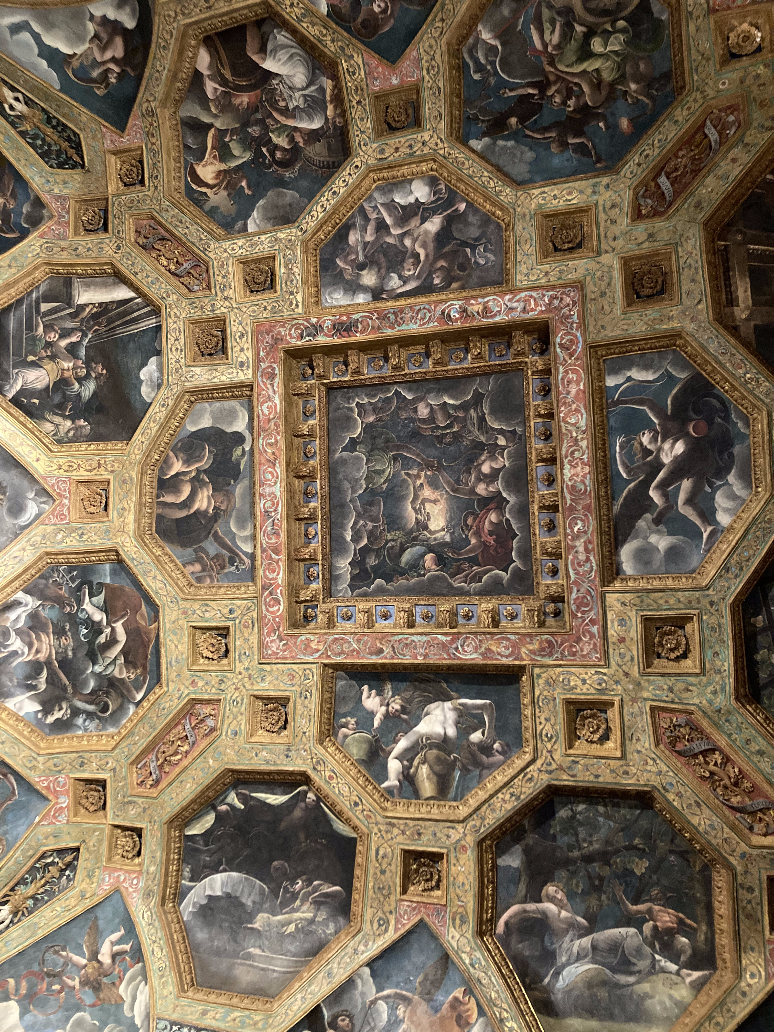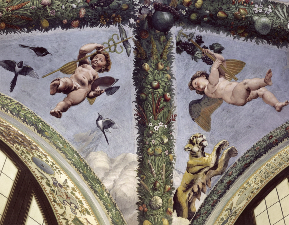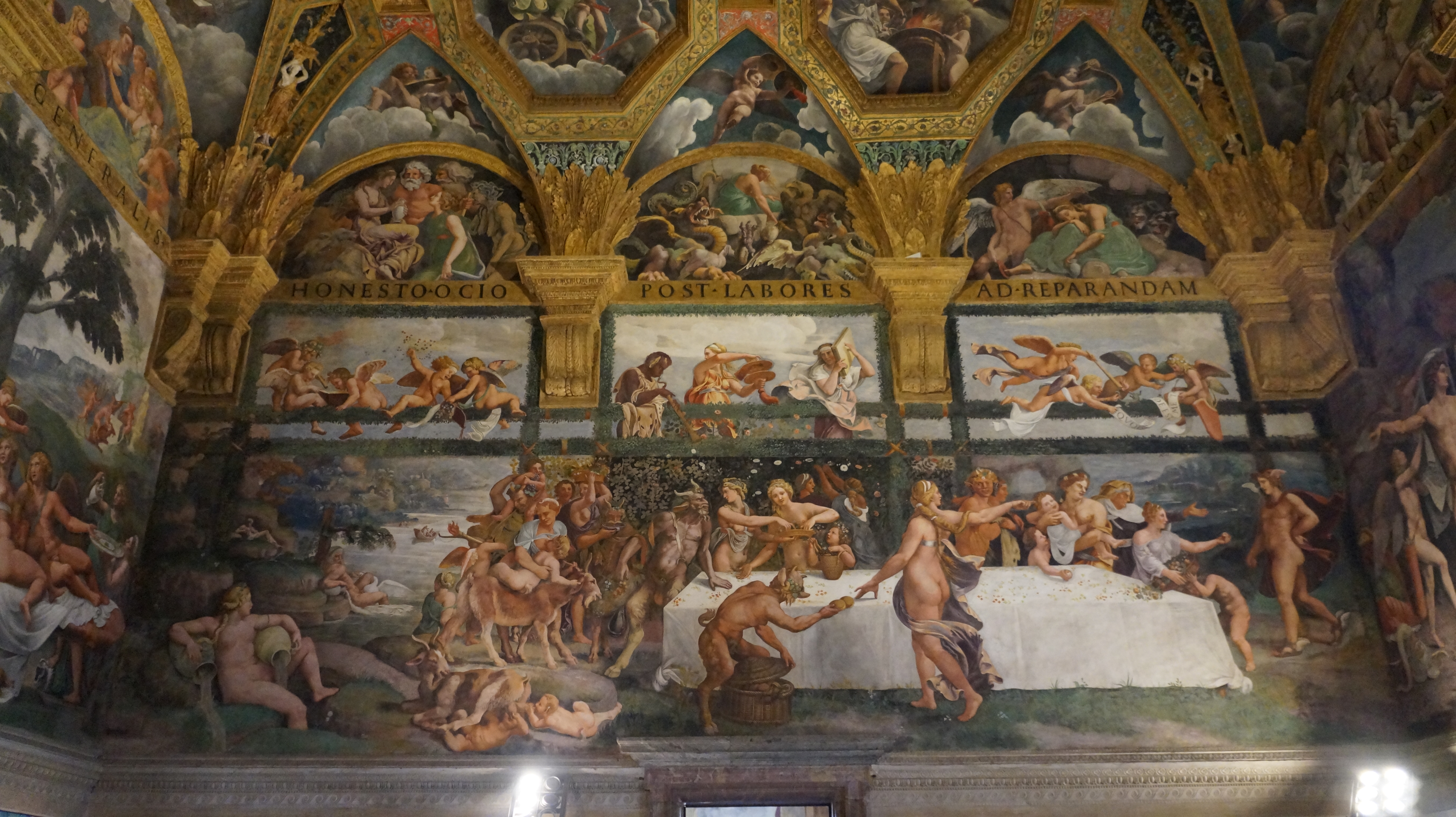 Uno de los colaboradores de Rafael en la Farnesina, Giulio Romano, recreó los amores de Psique y Cupido en una de las grandes salas del Palazzo Te de Mantua: los episodios se distribuyen en los 8 casetones octogonales y los 4 hexágonos, que rodean el panel cuadrado central presidido por Júpiter, y, además, en las doce pechinas e igual número de lunetas que sostienen el artesonado. Los dos lados largos de la estancia están decorados con escenas del convite, donde figuran los dioses y la pareja protagonista recostada en el lecho.