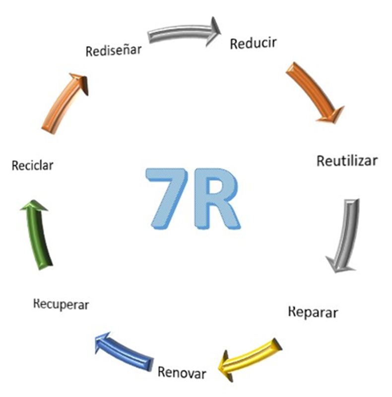 Fig. 2. Adaptación de la regla de las 3R a las 7R (modificado de Ecoembes).