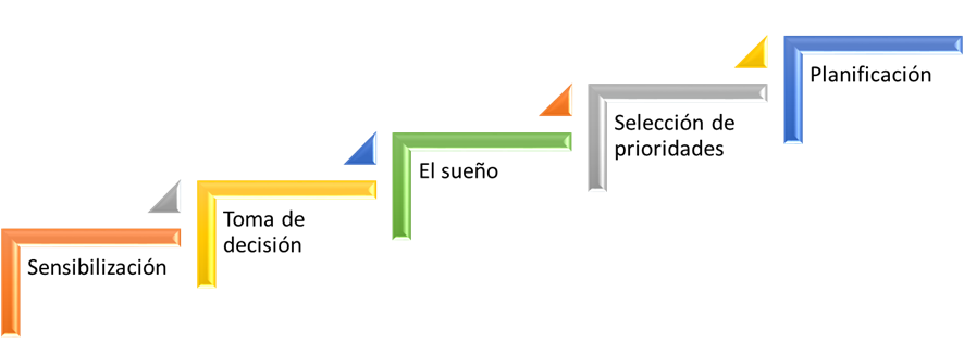 Para transformar un centro en Comunidad de Aprendizaje se suele requerir un cambio, a veces radical, en el funcionamiento del centro, consensuado y asumido por toda la comunidad educativa. La formación de una Comunidad de Aprendizaje se desarrolla a través de diferentes fases (Fig. 13), entre la que destacaremos la etapa de los sueños, que crea unas dinámicas muy intensas de reflexión e introspección, despertando y movilizando a los participantes (la comunidad educativa, familiares y el entorno social) hacia el cambio y la mejora. Y aquí podríamos hacer alusión a un despertar de la concienciación ambiental y en favor de la lucha contra el calentamiento global. Tras esa incorporación del centro a Comunidades de Aprendizaje, el proyecto seguiría implicando un proceso de transformación permanente plasmado en una continua investigación durante la aplicación pedagógica del proyecto, y en fases de formación y evaluación mayor cada cierto tiempo.