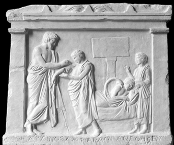 Imagen: Estela votiva del santuario de Anfiarao en Oropos (s. IV a.C.), Ethnikó Archaiologikó Mouseío, Atenas
