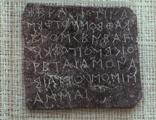 Imagen: Tablilla de bronce con una respuesta oracular, de Dodona (s. VI a.C.), Archaiologikó Mouseío, Ioannina